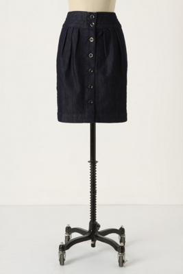 *Denim gets all buttoned up at the high waistline, then gathers into Pilcro's slim silhouette.*